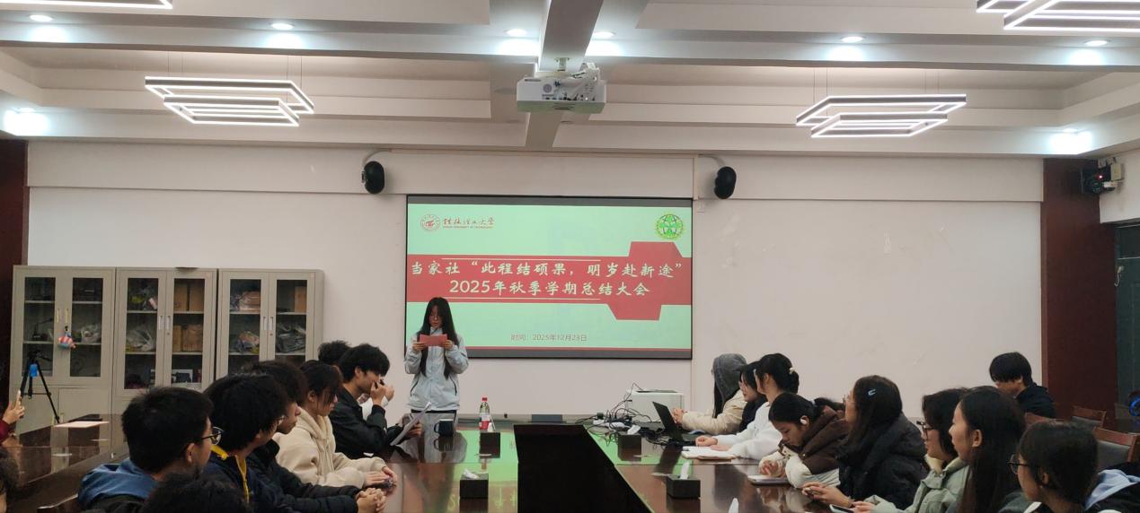 当家社以“此程结硕果,明岁赴新途”为主题,在12407会议室召开2025年秋季学期总结表彰大会。社团指导老师苏相丁,全体社团成员参会。
