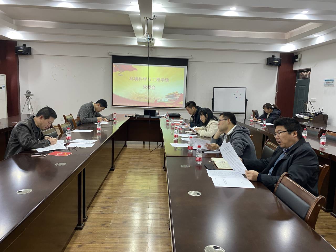 在雁山校区萃华楼12407会议室召开党委会,学院全体党政领导班子成员、党委委员参加会议,会议由学院党委书记姜子亮主持。