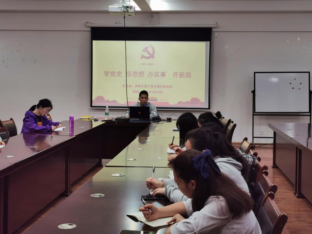 本科生第二党支部在12407开展党史学习教育,支部党员参加会议,会议由支部副书记杨智钧同志主持。